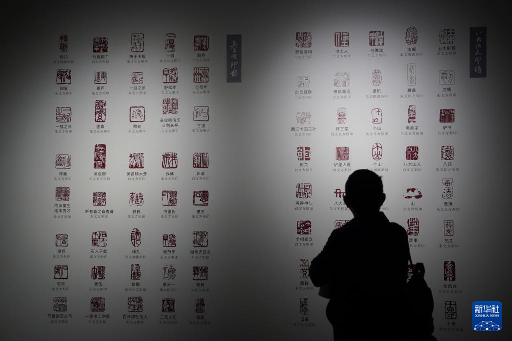 4月29日,觀眾在參觀八大山人和吳昌碩的印章對比。