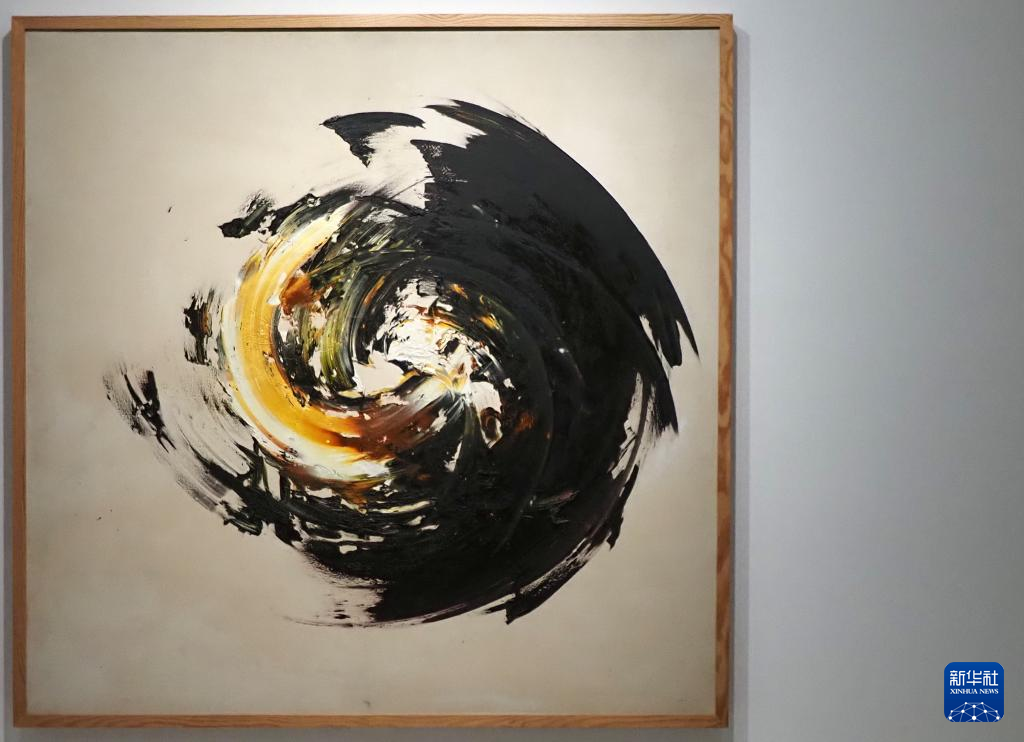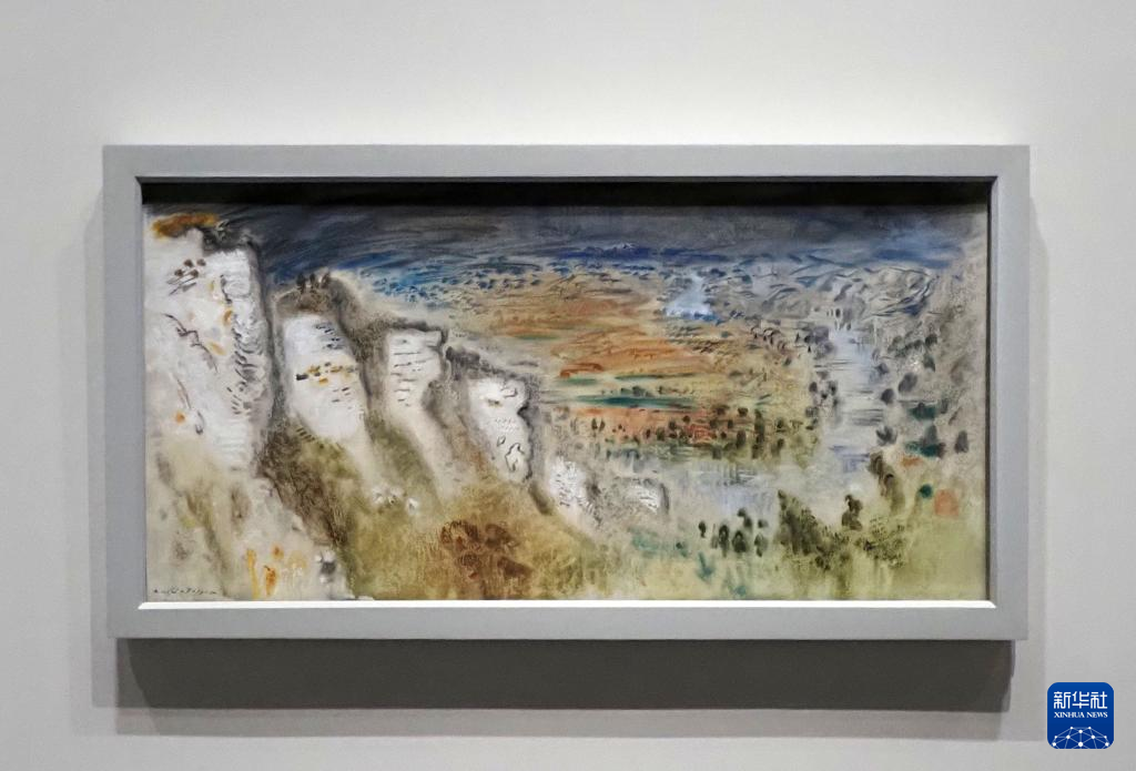 這是特展上展出的法國藝術家安德烈·馬松作品《流經拉羅什吉永的塞納河》(4月28日攝)。