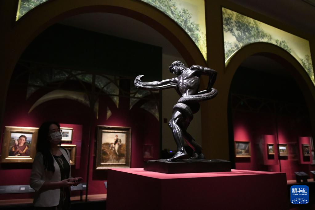 這是4月27日在廣東省博物館的“綻放:維多利亞時代的藝術”預展上拍攝的《與蟒搏斗的勇士》。