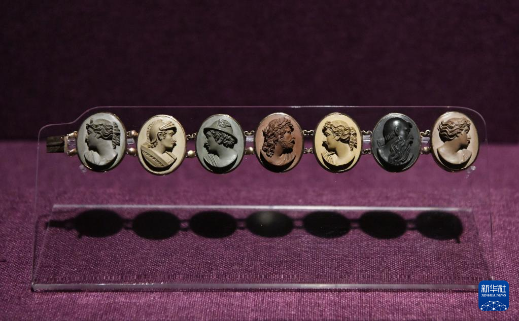 這是4月27日在廣東省博物館的“綻放:維多利亞時代的藝術”預展上拍攝的珠寶手鐲。
