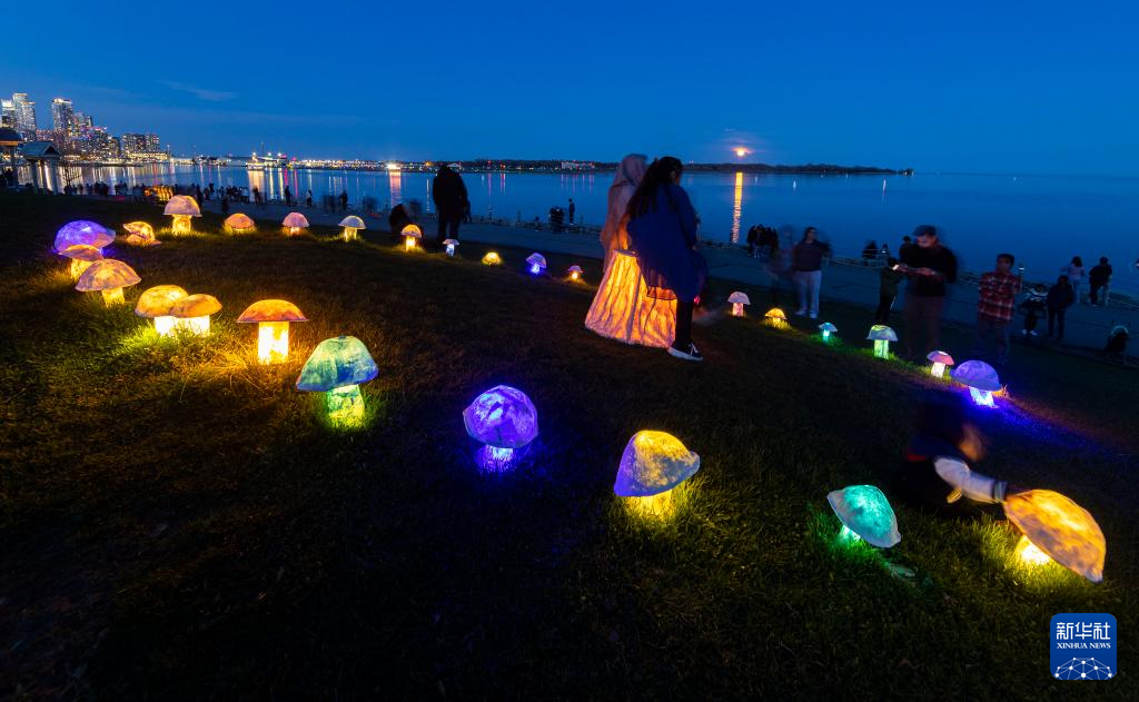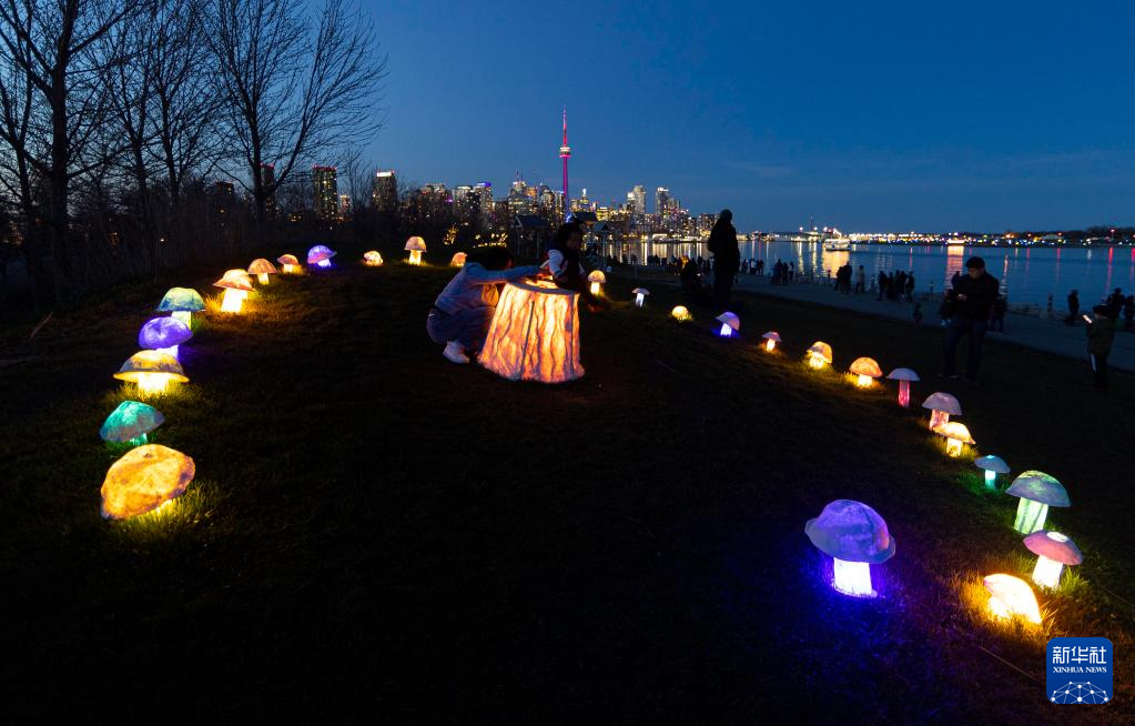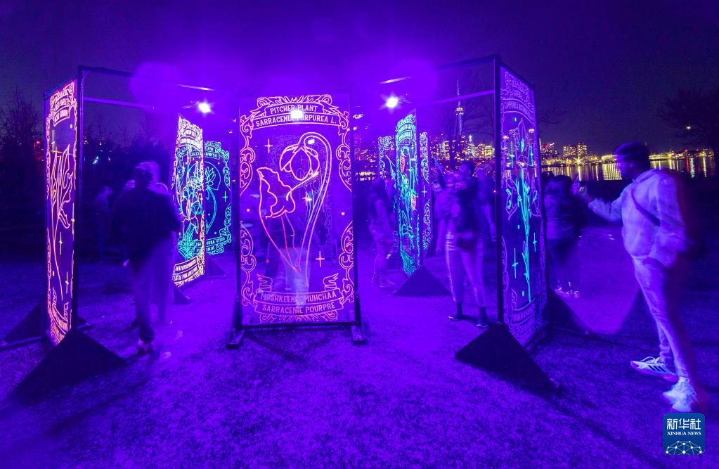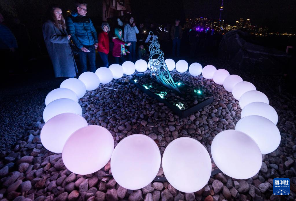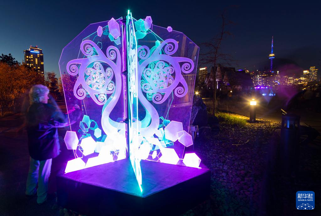 5月5日,人們在加拿大多倫多舉辦的藝術燈光秀上參觀。新華社發(鄒崢攝)