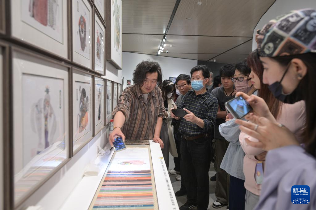 5月9日,作者申杰在展覽現場向觀眾介紹自己的作品。