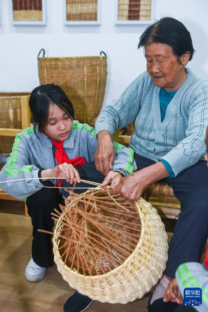 近年來,泉慶村的非遺柳編工坊定期在周邊學校開展非遺柳編課程,傳承當地特色非遺技藝。