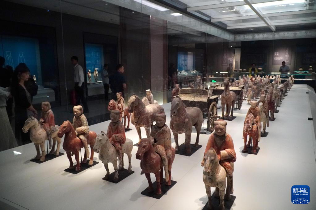 5月15日在山東省青州博物館新館拍攝的正在展出中的西漢彩繪陶俑。