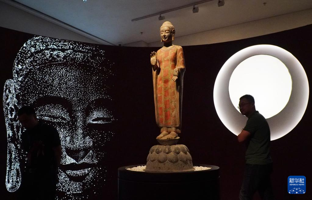 5月15日,在山東省青州博物館新館,1996年龍興寺遺址窖藏出土的佛教造像正在進行展出。