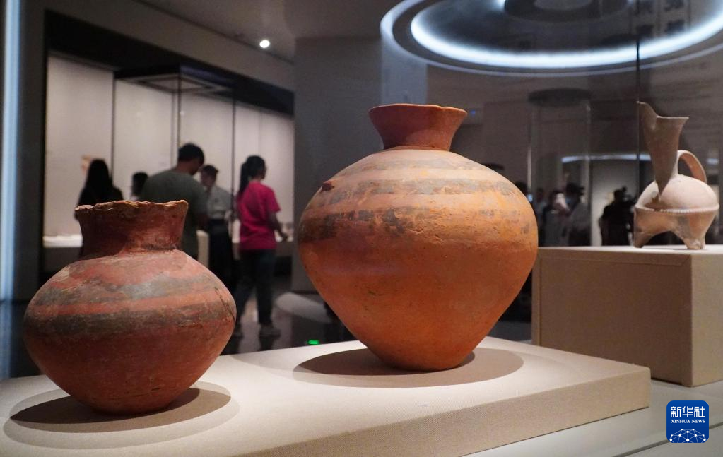 5月15日,在山東省青州博物館新館,大汶口文化彩陶壺正在進行展出。