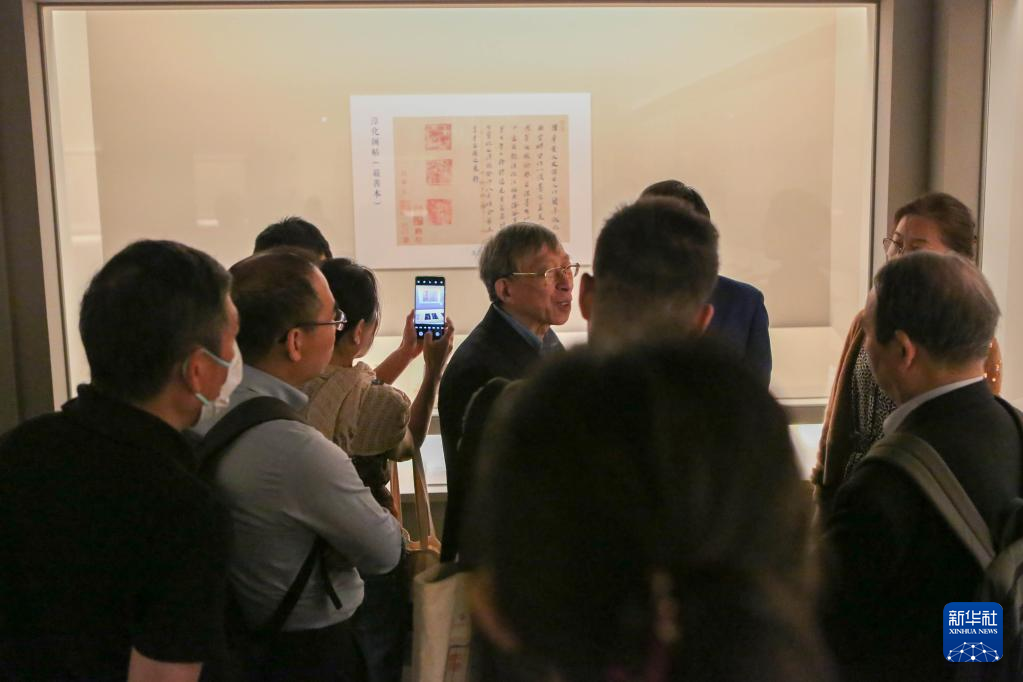 5月15日,媒體記者在欣賞拓本《淳化閣帖》。