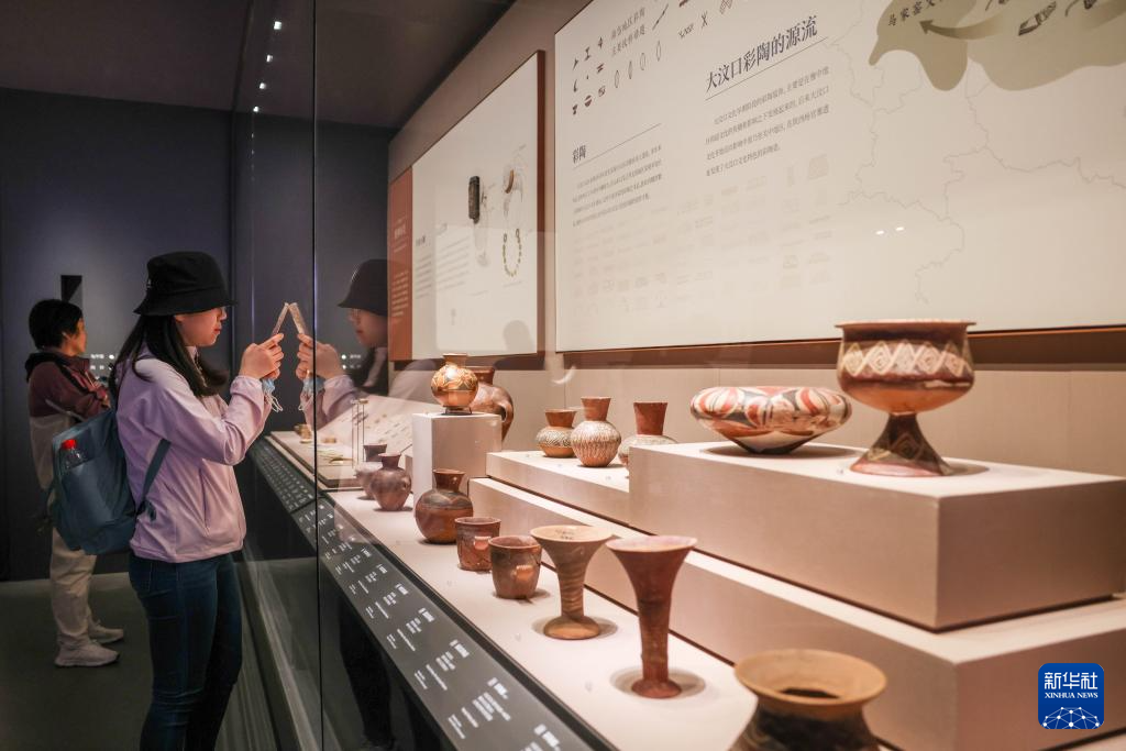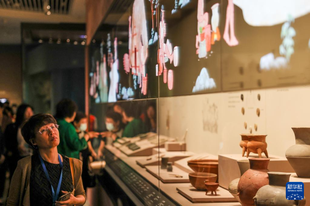 5月16日,觀眾在參觀“海岱日新——山東歷史文化展”展出的史前時期陶器。