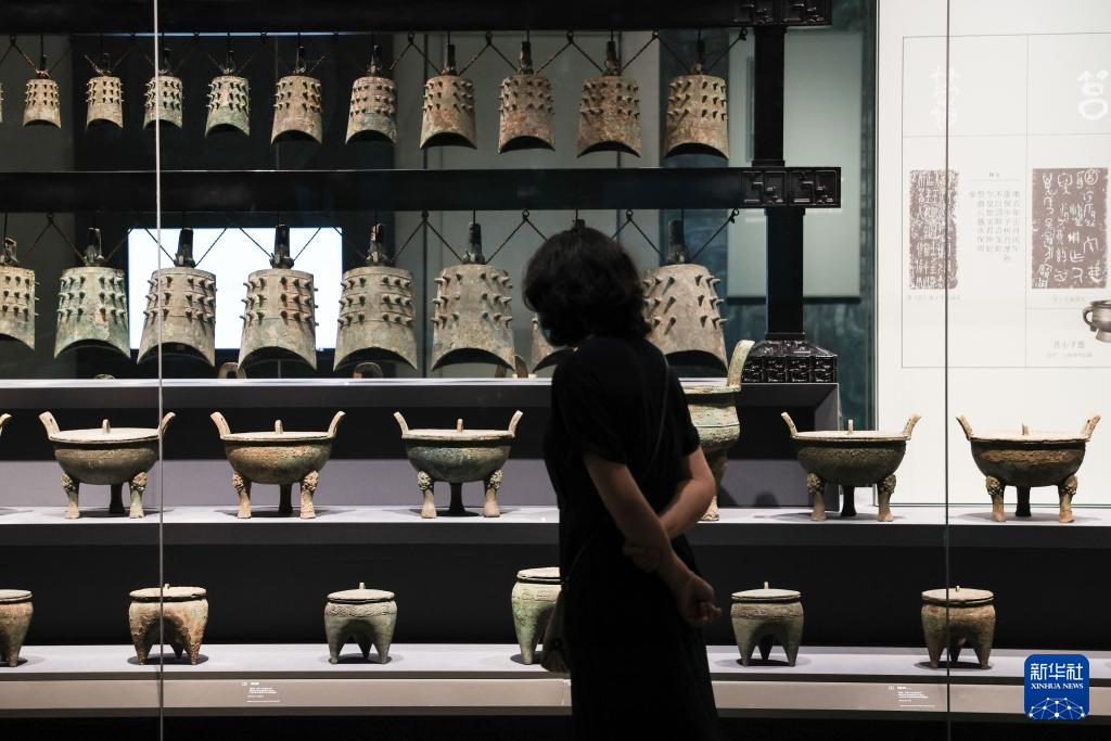 5月16日,觀眾在參觀展出的商周時期青銅器。