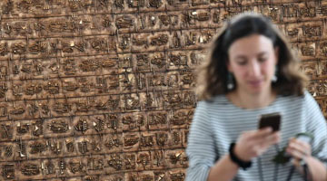 5月16日,觀眾在天津數字藝術博物館“梵高的世界”全景數字藝術互動大展預展上通過手機掃描展品觀看AR動畫。