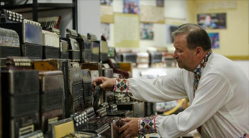 5月16日,葛磊在非遺傳習基地制作蘆葦畫時進行烙燙。
