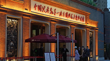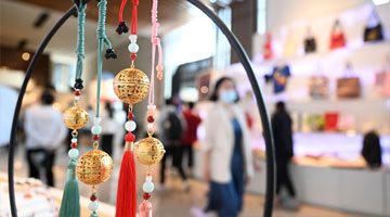 5月16日,谷穗(左)在非遺傳習基地了解學徒的工作狀態。