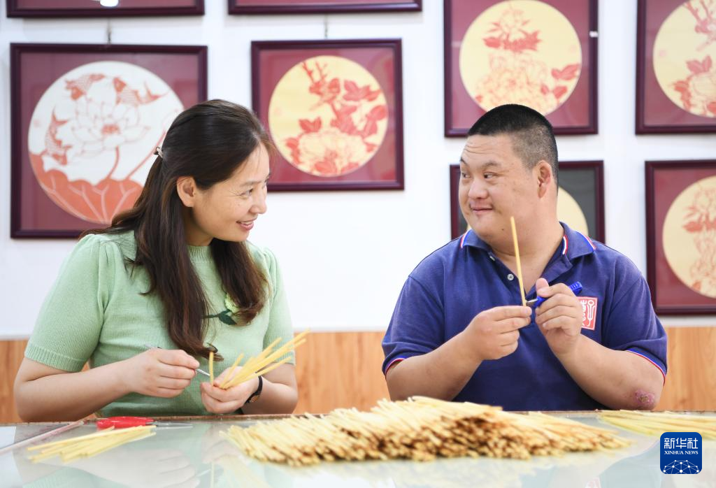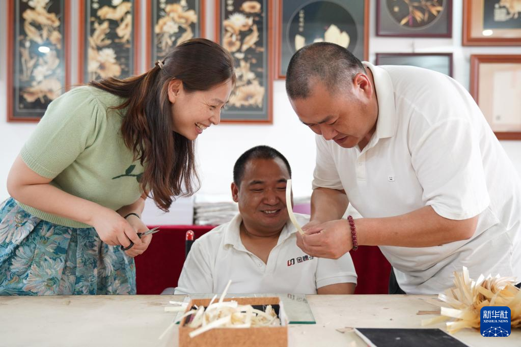 夫妻倆推行殘疾人就業項目,每年拿出收入的20%作為傳承經費,包吃包住免費向殘疾人傳授蘆葦畫手工技藝。據介紹,公司至今累計培訓學員9000多人次,已發展成“國家級殘疾人非遺傳習基地”“國家級殘疾人文化創意產業基地”。