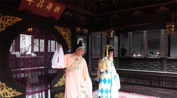 5月16日,谷穗(左)在非遺傳習基地與學徒交流。