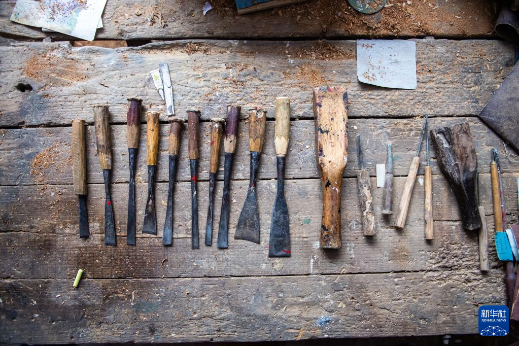 這是5月23日在洞口縣巖山鎮陽家山村拍攝的制作洞口木雕的工具。