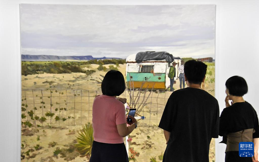 5月28日,市民在國家對外文化貿易基地(北京)的意大利MDC畫廊觀看展出的油畫作品。