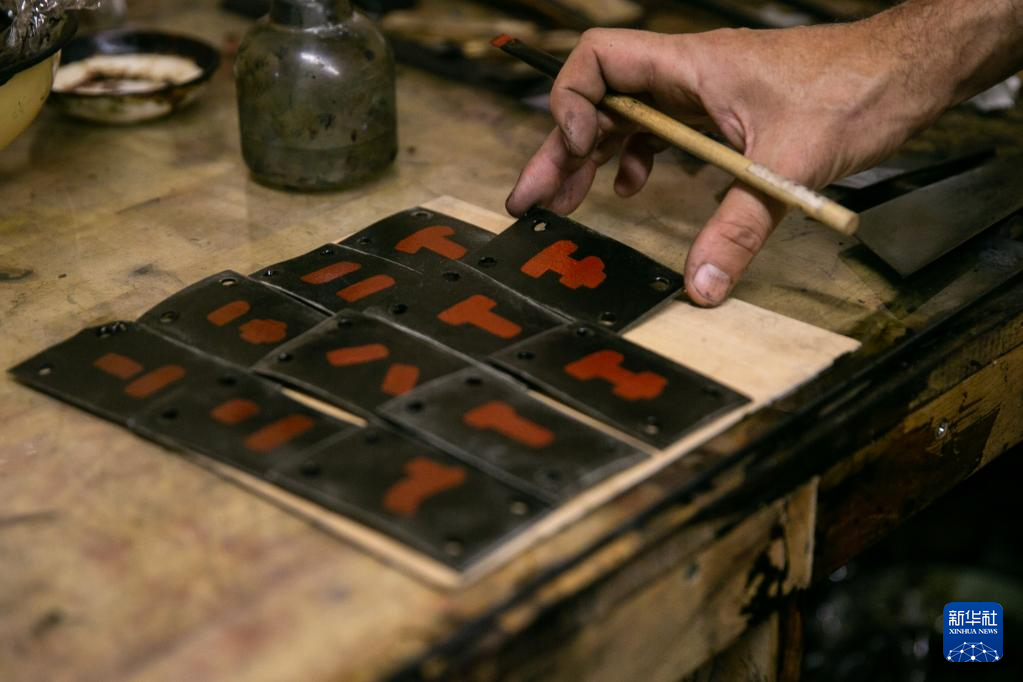 5月29日,在重慶市城口縣北屏鄉松柏村,文森·漆在工作室外查看拋光后的漆器。