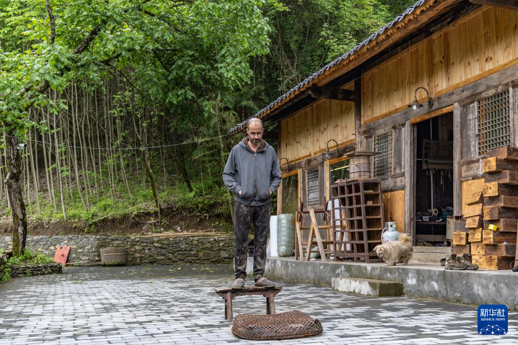 5月29日,在重慶市城口縣北屏鄉松柏村,文森·漆在自己的工作室外。