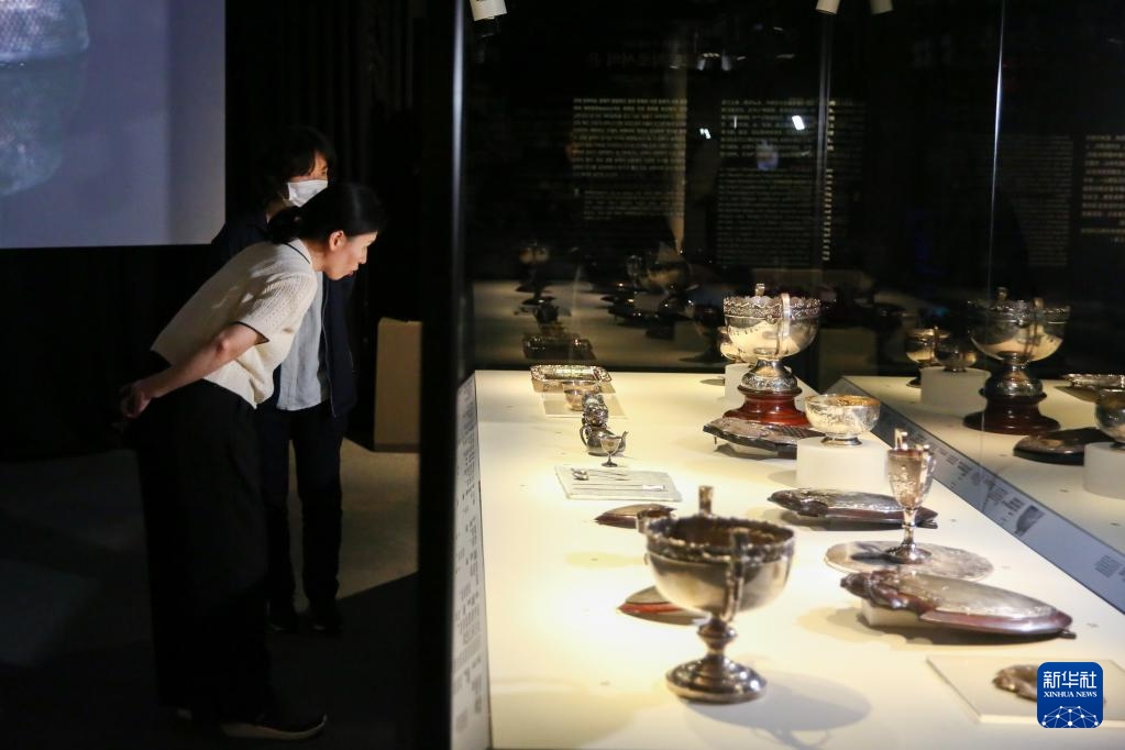 6月1日,人們在韓國首爾歷史博物館參觀“海上銀珠·璀璨華光——上海市歷史博物館館藏銀器展”。