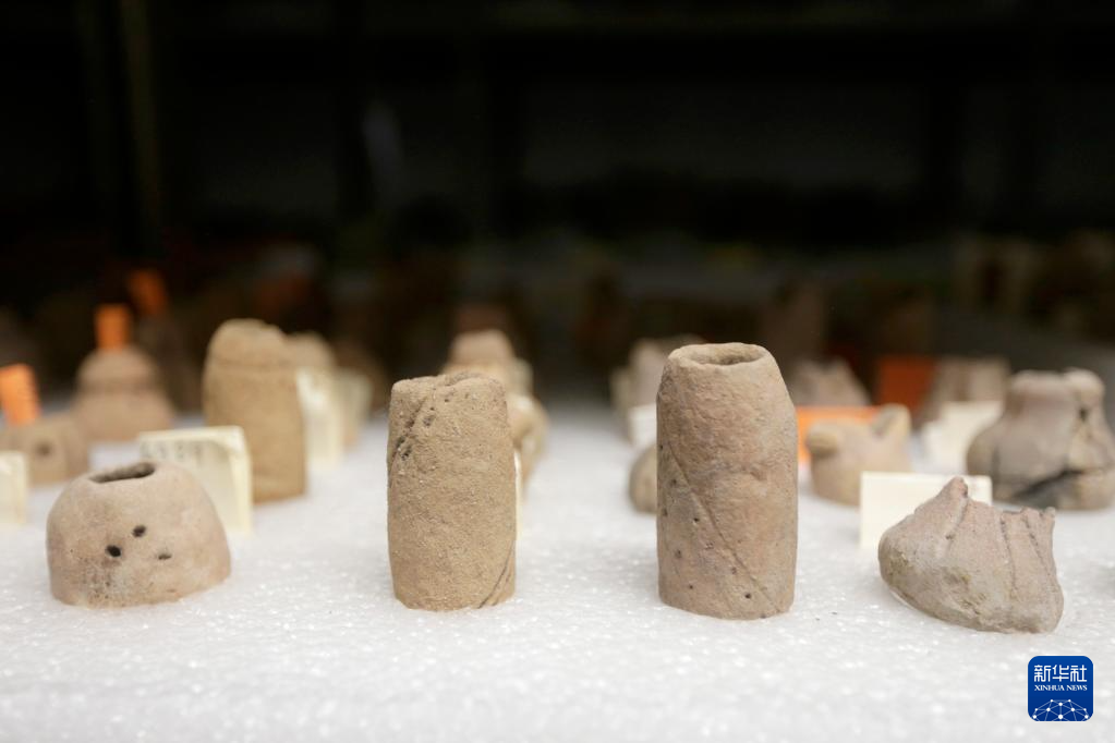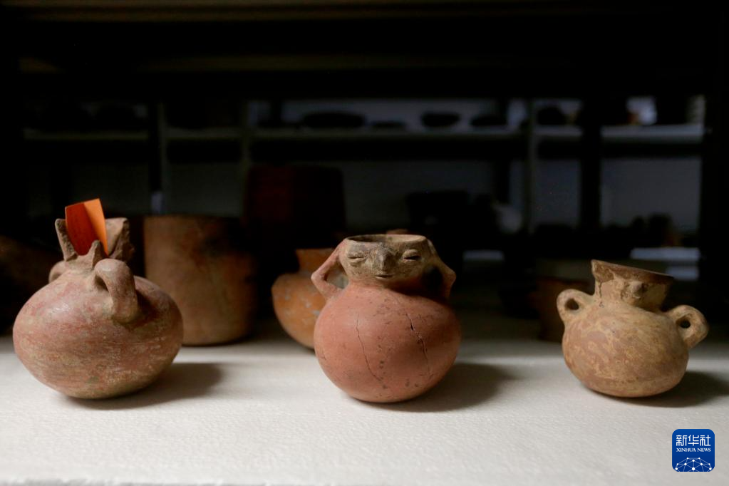這是6月8日在洪都拉斯科潘瑪雅遺址國際考古隊倉庫內拍攝的由中洪聯合考古隊發掘出的陶器文物。新華社發(盧西奧·塔沃拉攝)