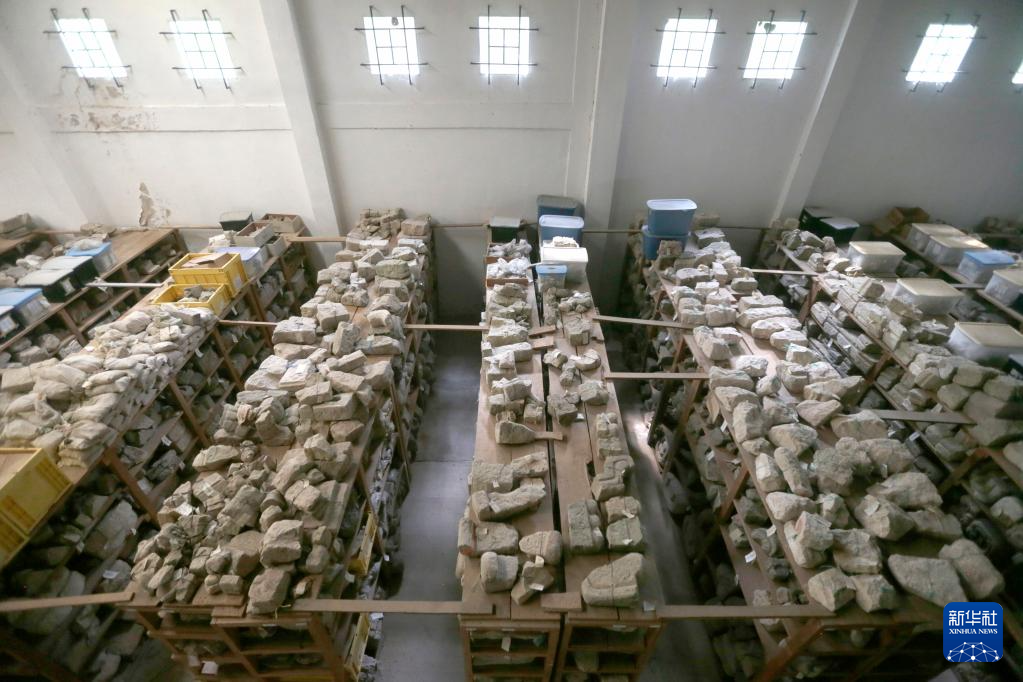 這是6月8日在洪都拉斯科潘瑪雅遺址國際考古隊倉庫內拍攝的陶器文物。新華社發(盧西奧·塔沃拉攝)