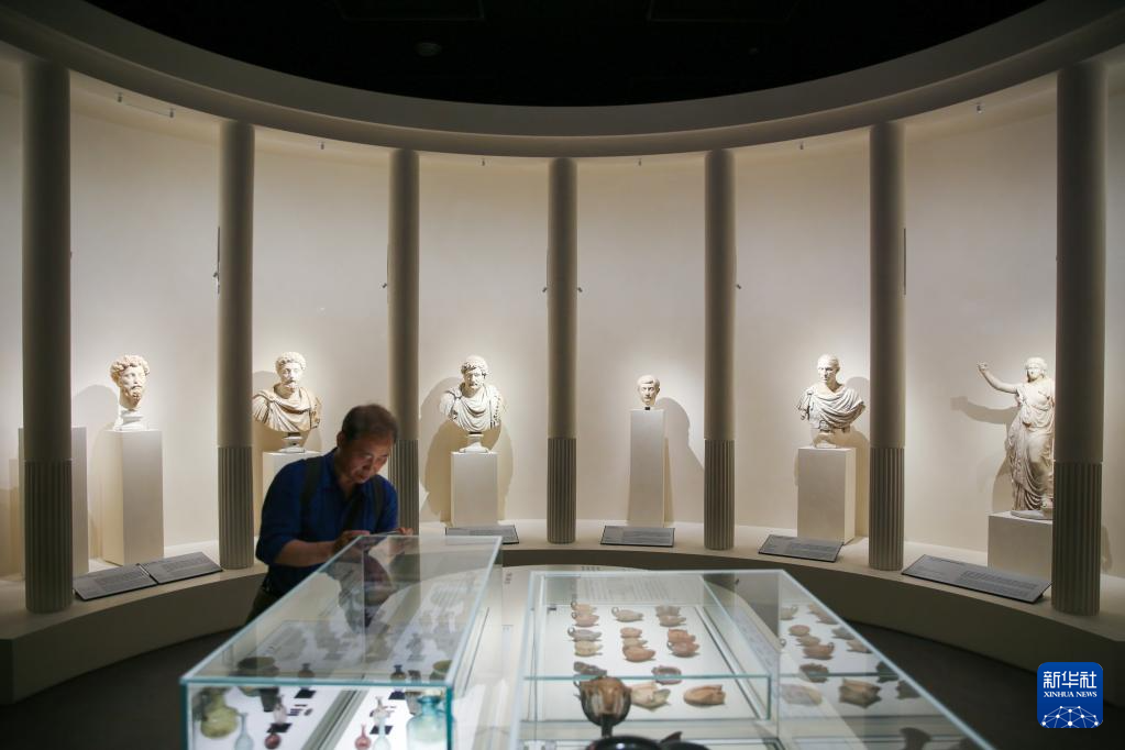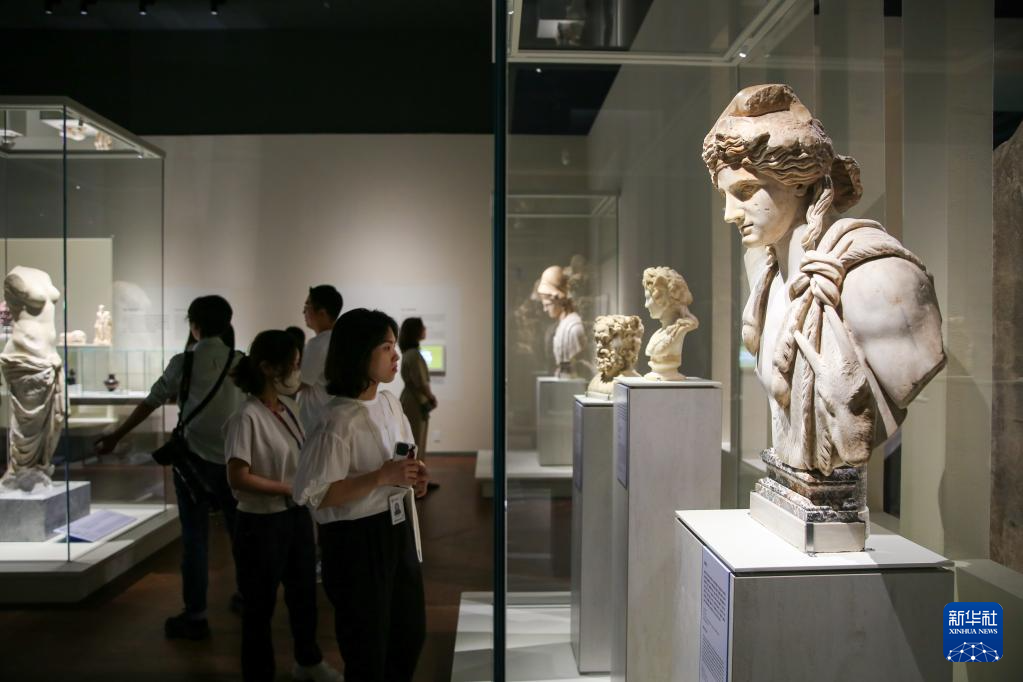 6月14日,人們在韓國首爾國立中央博物館參觀古希臘和古羅馬文物展品。