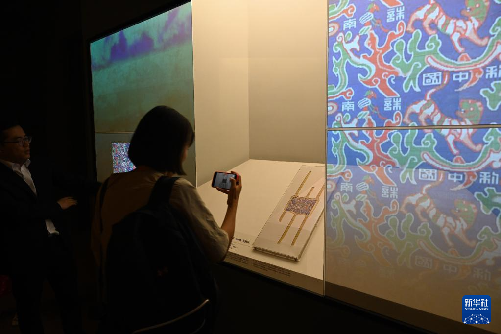 6月16日,觀眾參觀“五星出東方利中國”錦護膊(復制品)。
