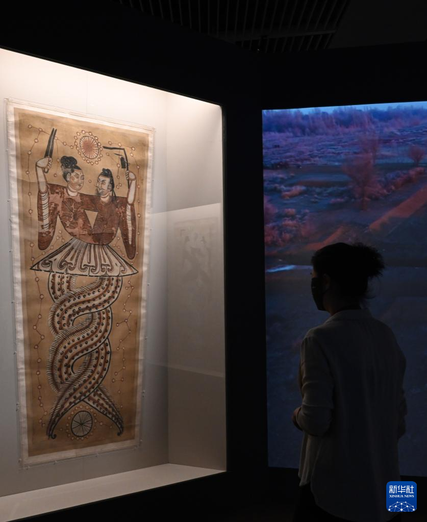 6月16日,觀眾參觀伏羲女媧絹畫。