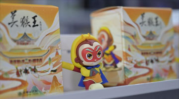 6月16日,在北京舉行的第29屆北京國際圖書博覽會上展示的 “美猴王系列”文創產品。