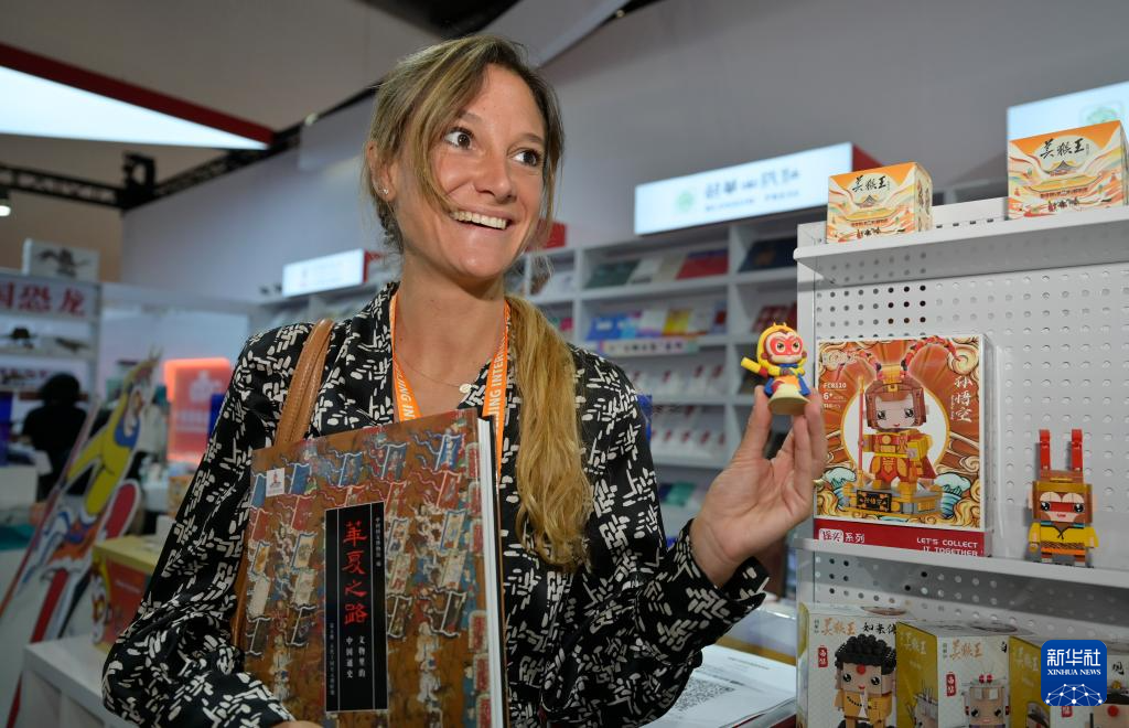 6月16日,在北京舉行的第29屆北京國際圖書博覽會上,外國出版商觀看“美猴王系列”文創產品。