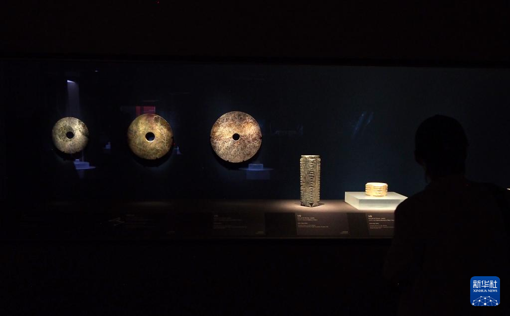 6月19日在特展上拍攝的上海青浦和金山地區出土的玉璧和玉琮。