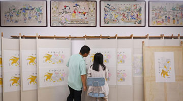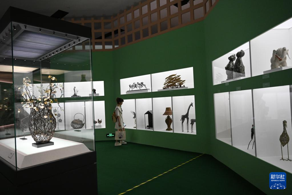 6月20日,竹編藝人陳紅萍在展覽現場介紹安溪的竹編工藝品。