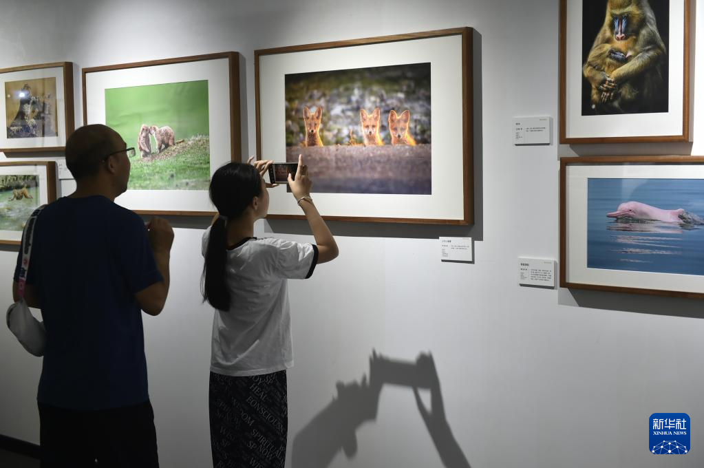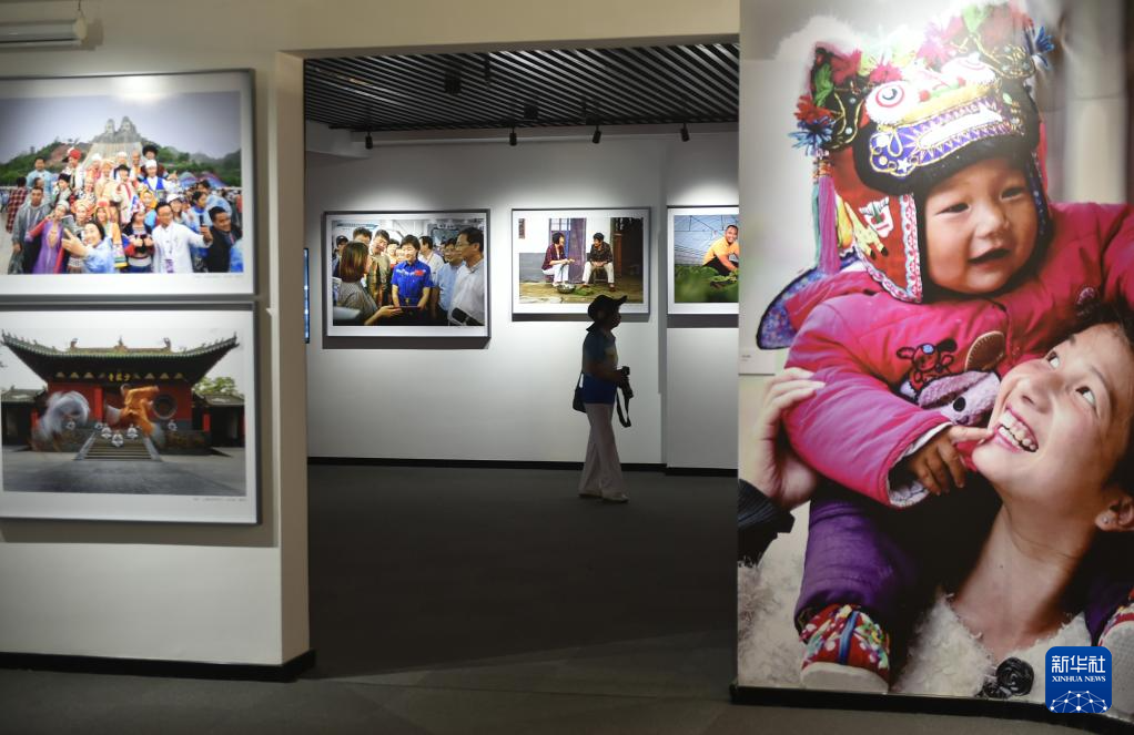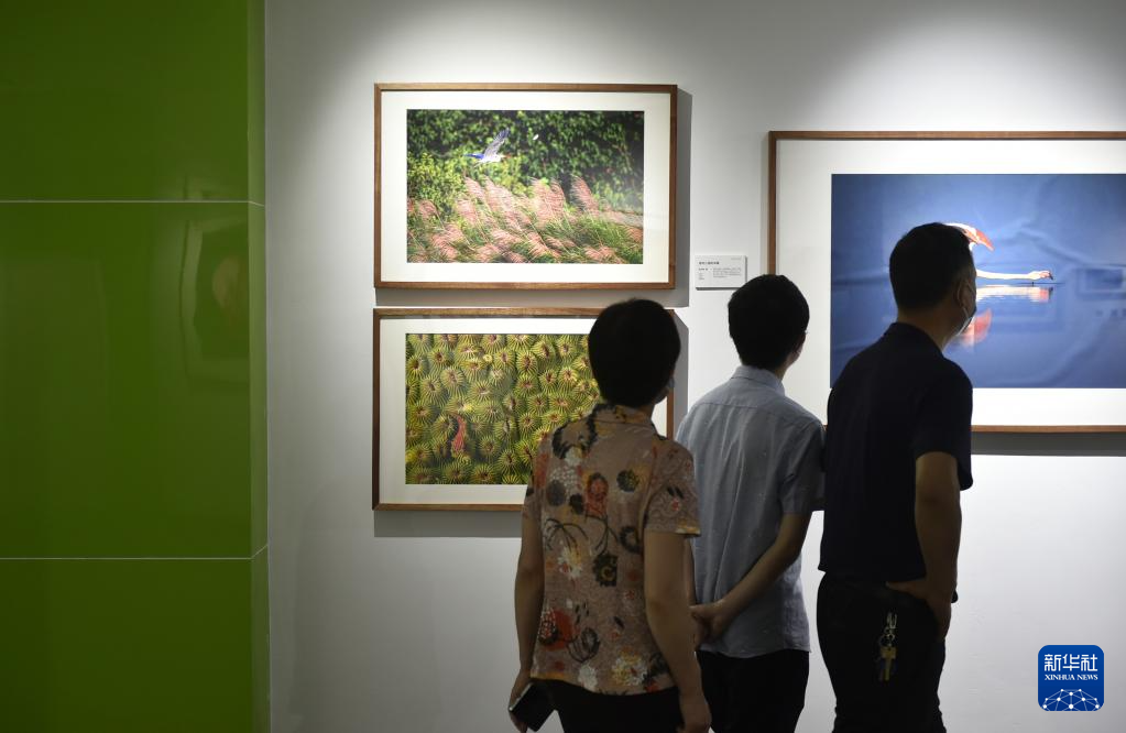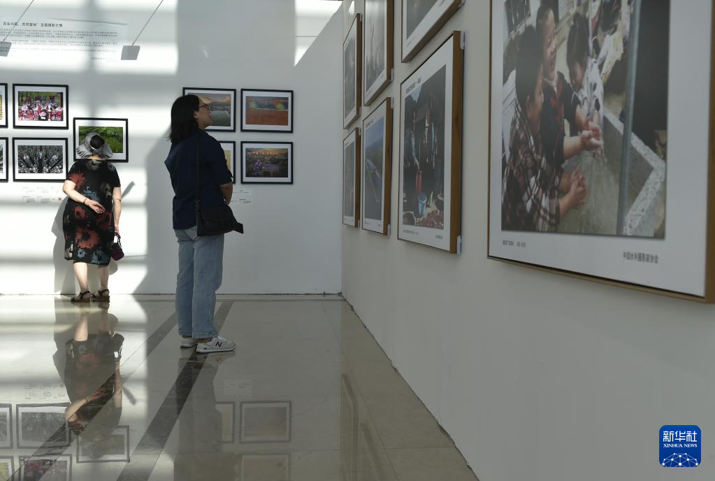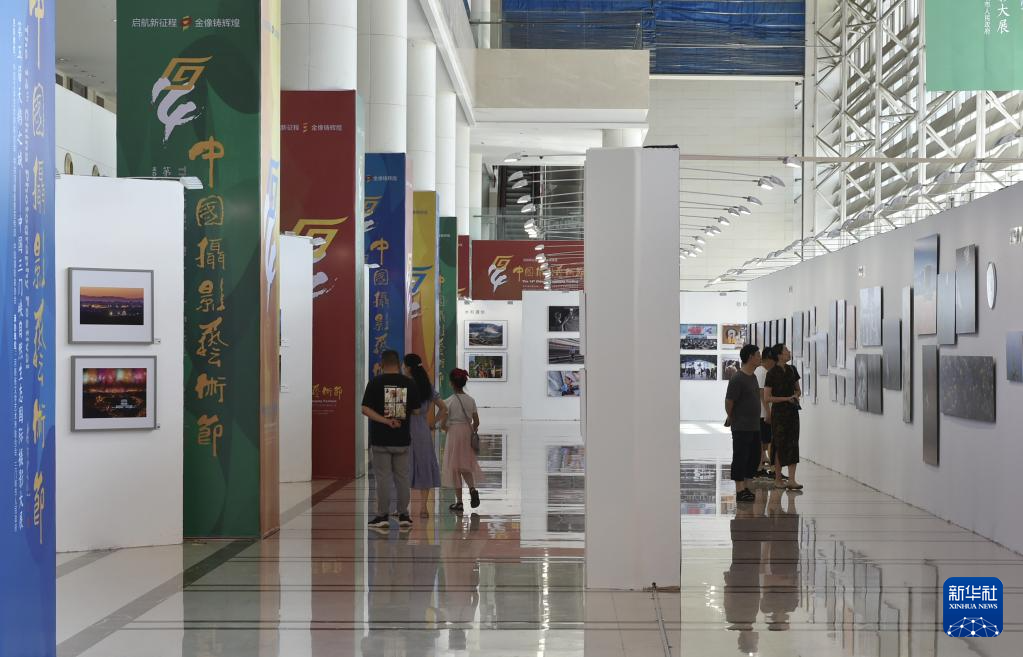 6月22日,參觀者在位于三門峽市的中國攝影藝術館內參觀拍攝展出的照片。