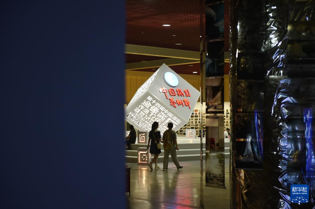 6月22日,參觀者在三門峽國際文博城內參觀展出的照片。