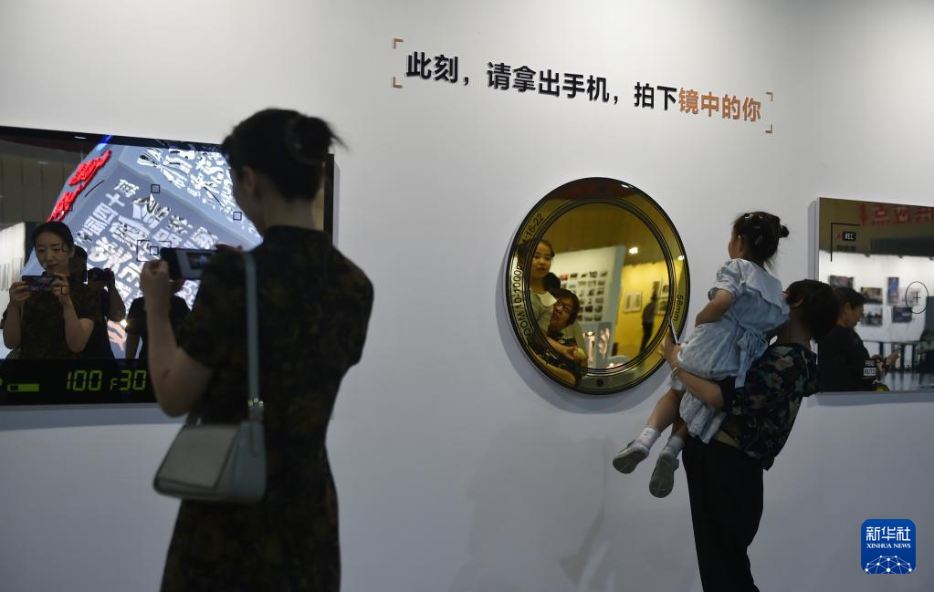 6月22日,參觀者在三門峽國際文博城內的展覽現場體驗互動項目。