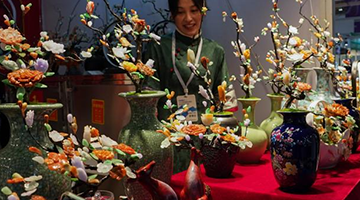 7月9日,廣西南寧,一名主播直播推介在南寧國際會展中心展出的“會動的《清明上河圖》展覽”。此次展覽以北宋畫家張擇端所繪《清明上河圖》為藍本,通過巨幕熒屏將原作放大數百倍,復原上千個畫中人物,再現北宋時期的繁華盛景。
