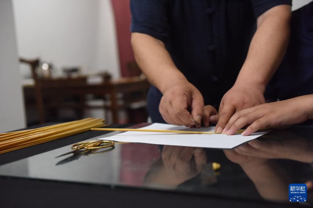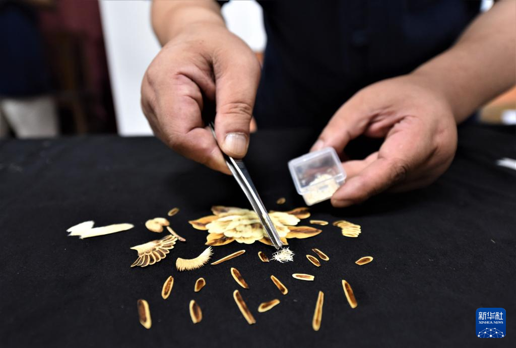 7月12日,吳永龍將“零件”從麥稈做成的條片上剪下。