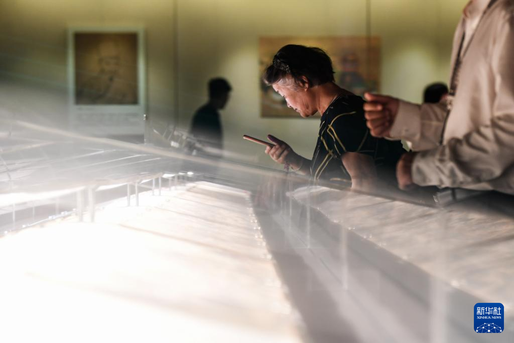 7月14日,游客在開封博物館觀賞汴繡作品。