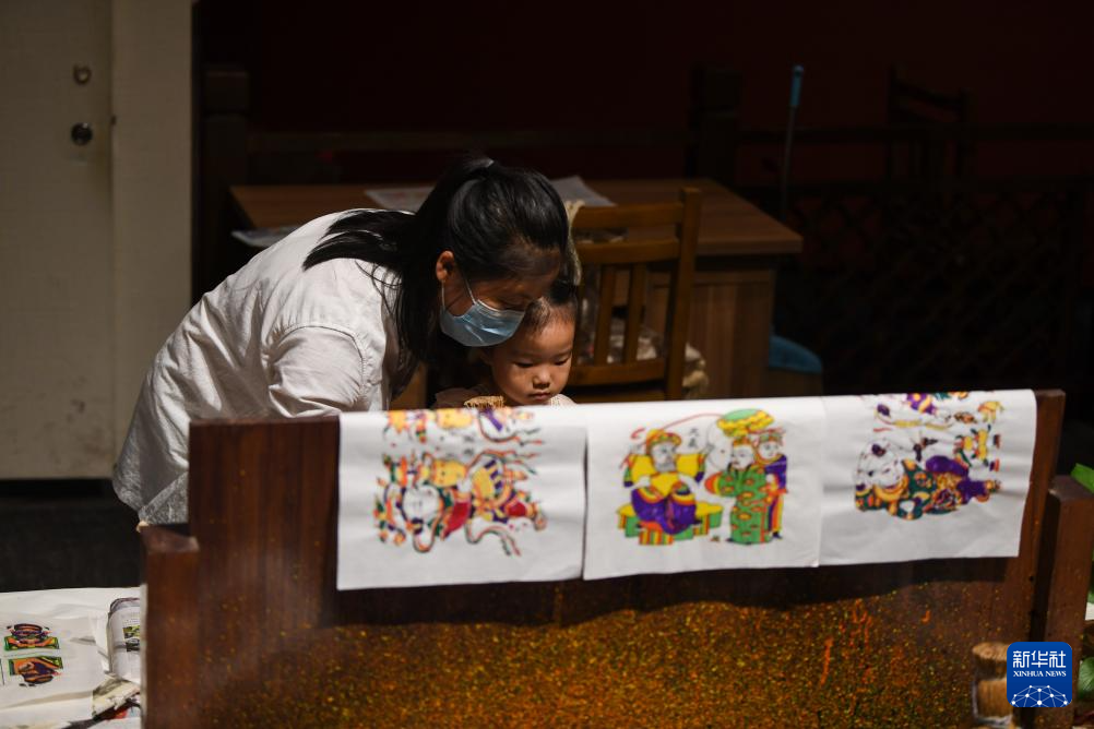 7月14日,游客在開封博物館體驗朱仙鎮木版年畫手工課。