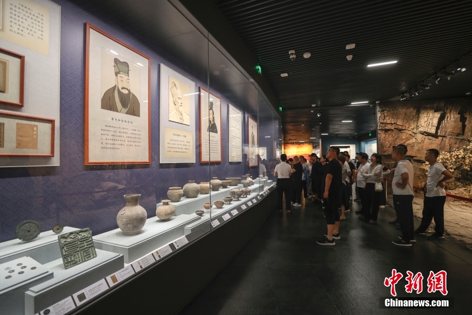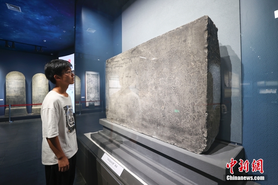 7月18日,山西運城,市民在參觀明代萬歷年間的“河東鹽池之圖”刻石。河東池鹽博物館通過介紹鹽池形成、鹽業發展變遷等內容,集中展示鹽文化發展歷程。中新社記者 張云 攝