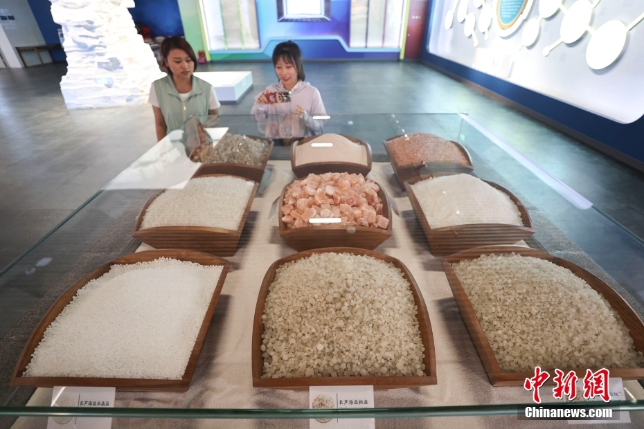 7月18日,山西運城,各種鹽展品吸引參觀者。河東池鹽博物館通過介紹鹽池形成、鹽業發展變遷等內容,集中展示鹽文化發展歷程。中新社記者 張云 攝