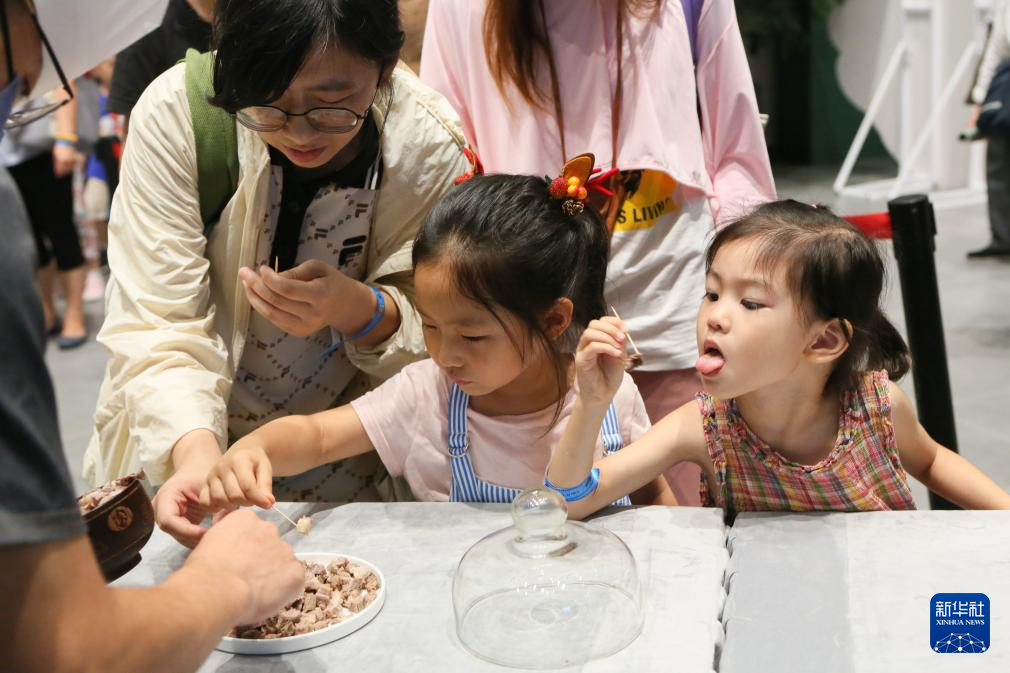 7月21日晚,小朋友在夜間“那達慕”大會上品嘗美食。
