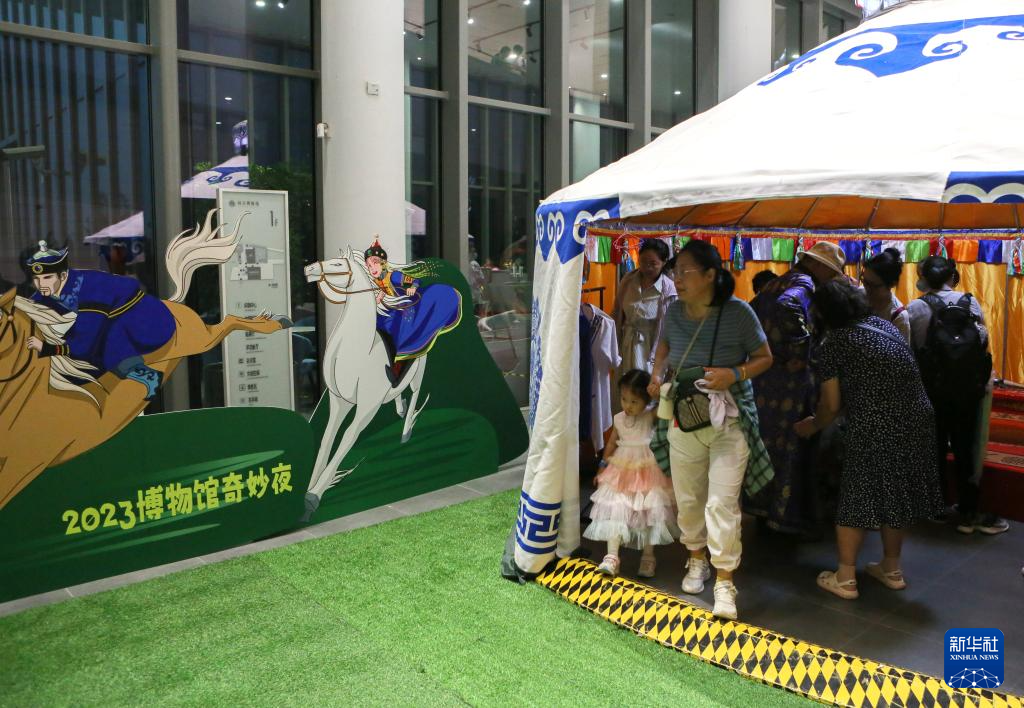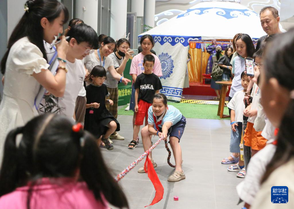 當日,為配合“漠北鋒鳴——鄂爾多斯青銅器文物精品展”,助力城市夜經濟發展,上海市閔行區博物館開展夜間“那達慕”大會。參觀者可以體驗射箭、拔河,品嘗特色美食,充分感受民俗風情的魅力。