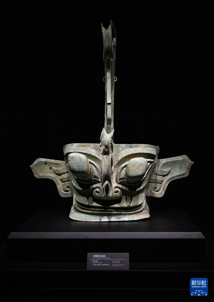 7月26日在三星堆博物館新館拍攝的青銅縱目面具。