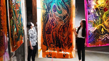 8月8日,在位于北京市平谷區的萬圣谷美術館,觀眾參觀藝術作品。