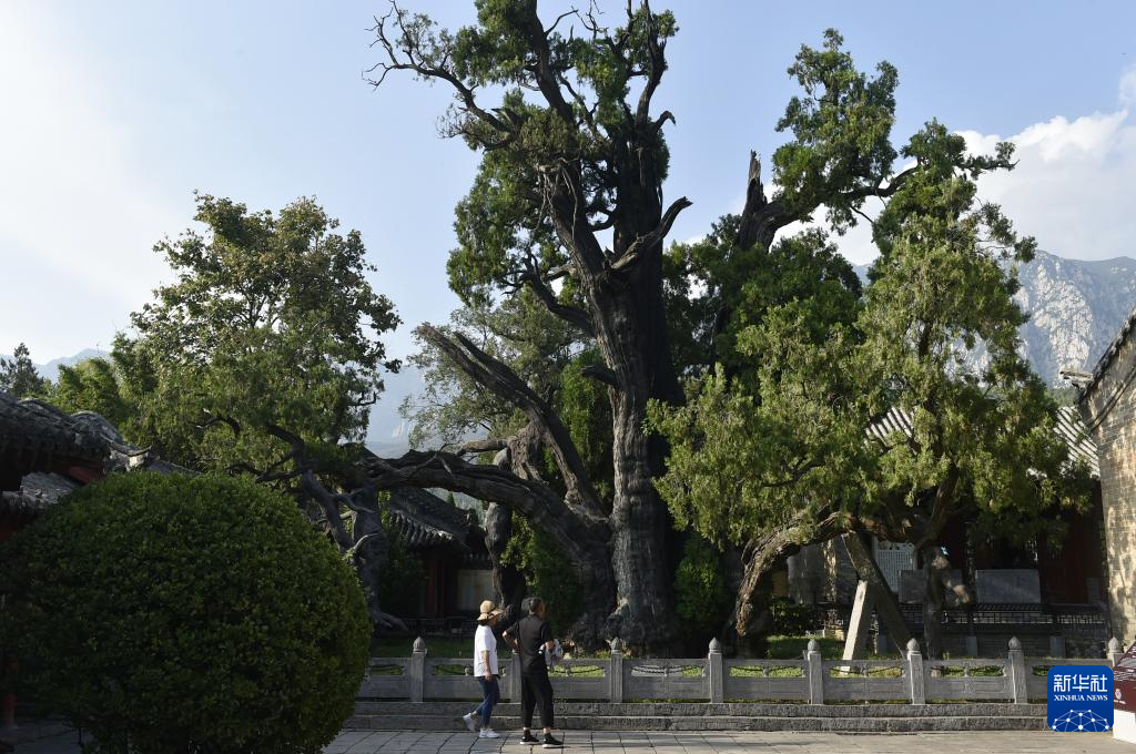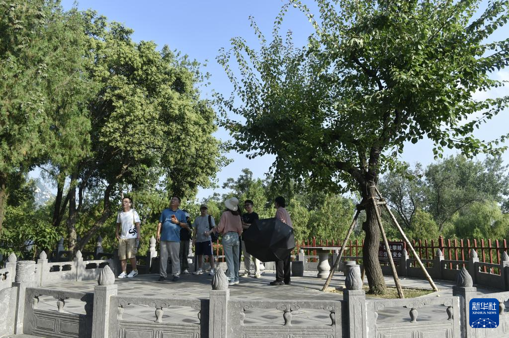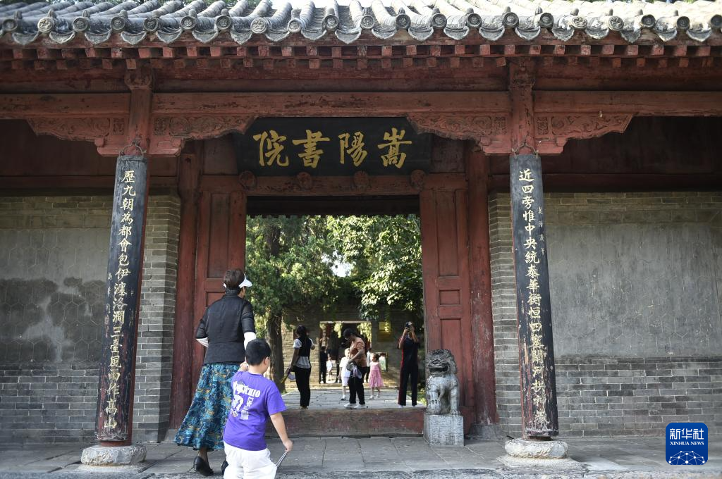 8月7日,游人在嵩陽書院內的“杏壇”參觀。