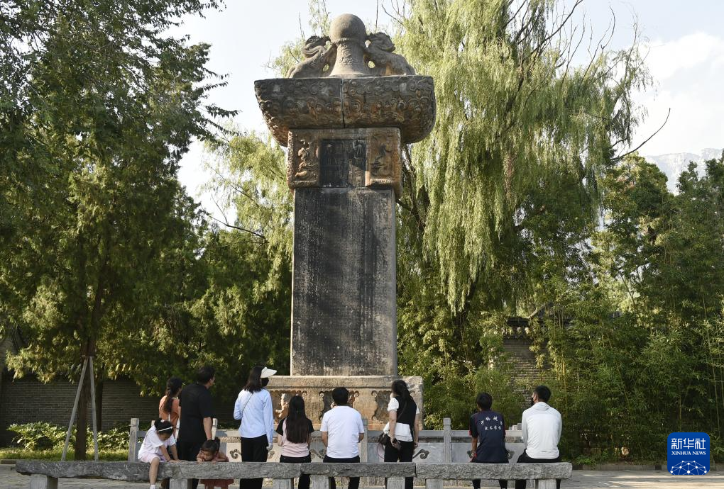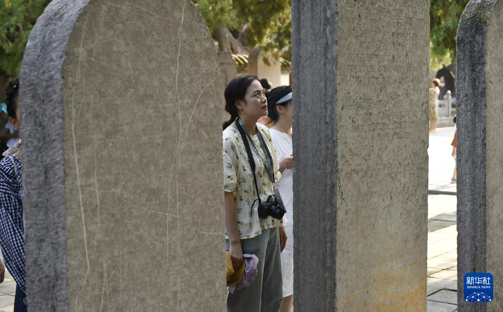 8月7日,游人在嵩陽書院內參觀“大唐嵩陽觀紀圣德感應之頌碑”。