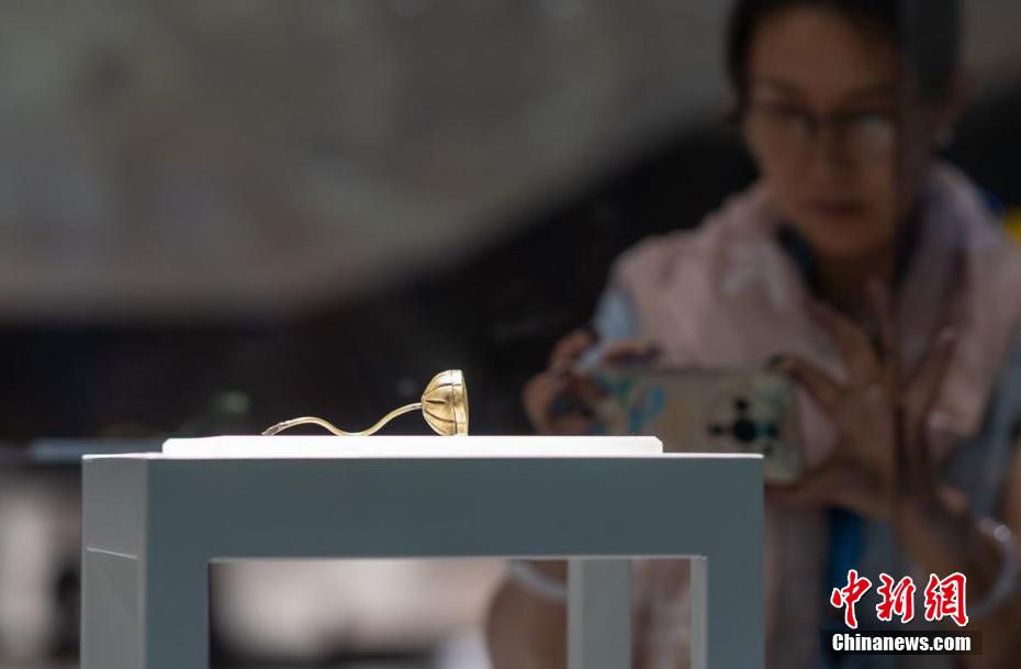觀眾被展出的南京中華門外長干里寶塔頂宋長干寺地宮出土的鎏金蓮蓬形銀寶子吸引。泱波 攝
