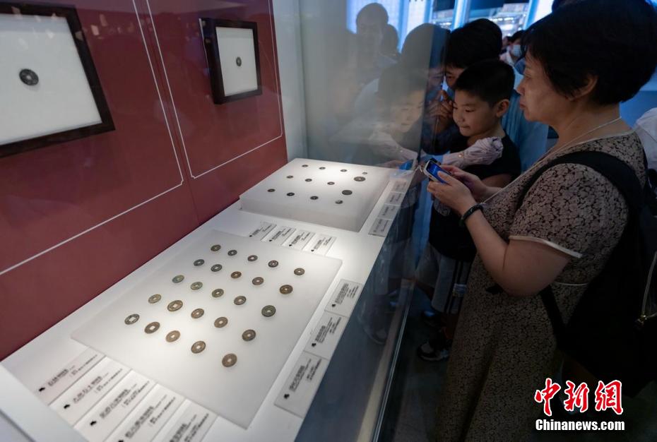 觀眾被展出的唐代無字通寶銅錢、宋代牛紋銅幣等吸引。泱波 攝