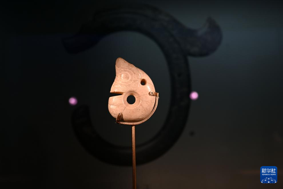 8月18日在中國國家博物館“中國古代玉器”專題展覽上拍攝的紅山文化玦形龍。